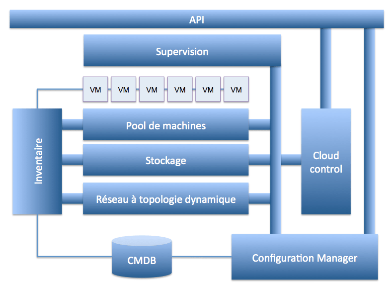 - Un pool de machines homogène et supportant la virtualisation fournit la puissance de calcul.