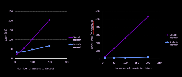Estimation du coût d'une approche manuelle comparé à une approche "donnée synthétique" automatique