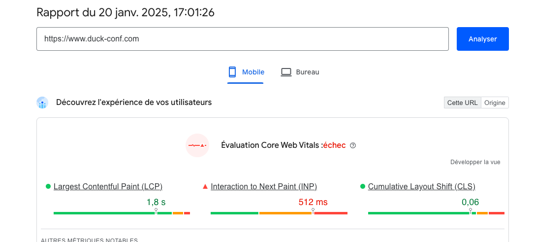 L’INP mesure le temps de réponse des interactions utilisateur. Ce critère est crucial, car tout le monde ne dispose pas d’un smartphone puissant.