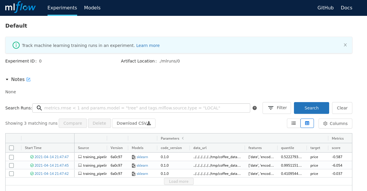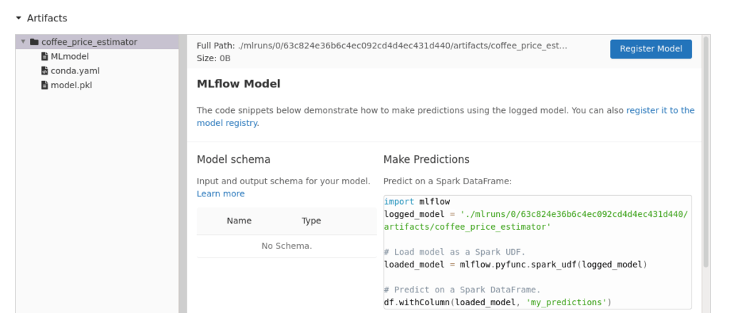 mlflow.sklearn.log_model(dummy_model, 'coffee_price_estimator')