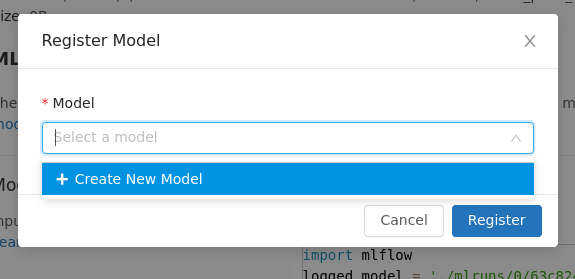 C’est dans cette section que se trouve la fonctionnalité qui nous intéresse. Le bouton Register Model nous permet de promouvoir ce modèle à un registre de modèle particulier.