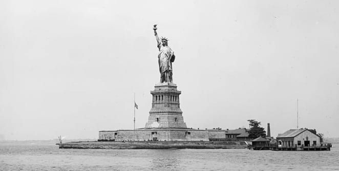 Cette statue, dessinée par le français Auguste Bartholdi (qui nous valut aussi le Lion de Belfort) débute son histoire en 1865 lors d’un dîner mondain. Dès le début, interdiction est faite d’y faire participer financièrement comme organisationnellement les États, elle est et doit rester un cadeau du peuple français au peuple américain ! Et c’est bien là que commencent les difficultés d’Édouard de Laboulaye, le concepteur du projet : en l’absence d’État, pas de budget, pas d’organisation verticale habituée à commander pour un projet d’ampleur comme celui-là, les difficultés sont prévisibles…