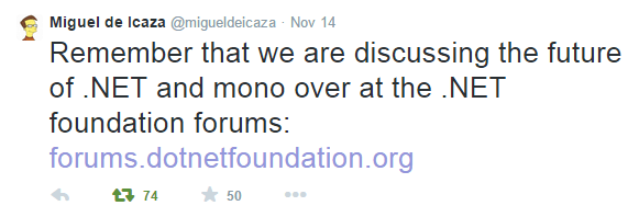 Le futur de la plateforme .NET se fera principalement sous la bienveillance de Microsoft mais aussi en collaboration avec la Fondation .NET, créé en partenariat avec le groupe Xamarin, et dans laquelle Miguel de Icaza (créateur de Mono) a beaucoup de poids. D'ailleurs ce dernier insiste sur le fait que tout le monde peut participer à cette transformation open source :