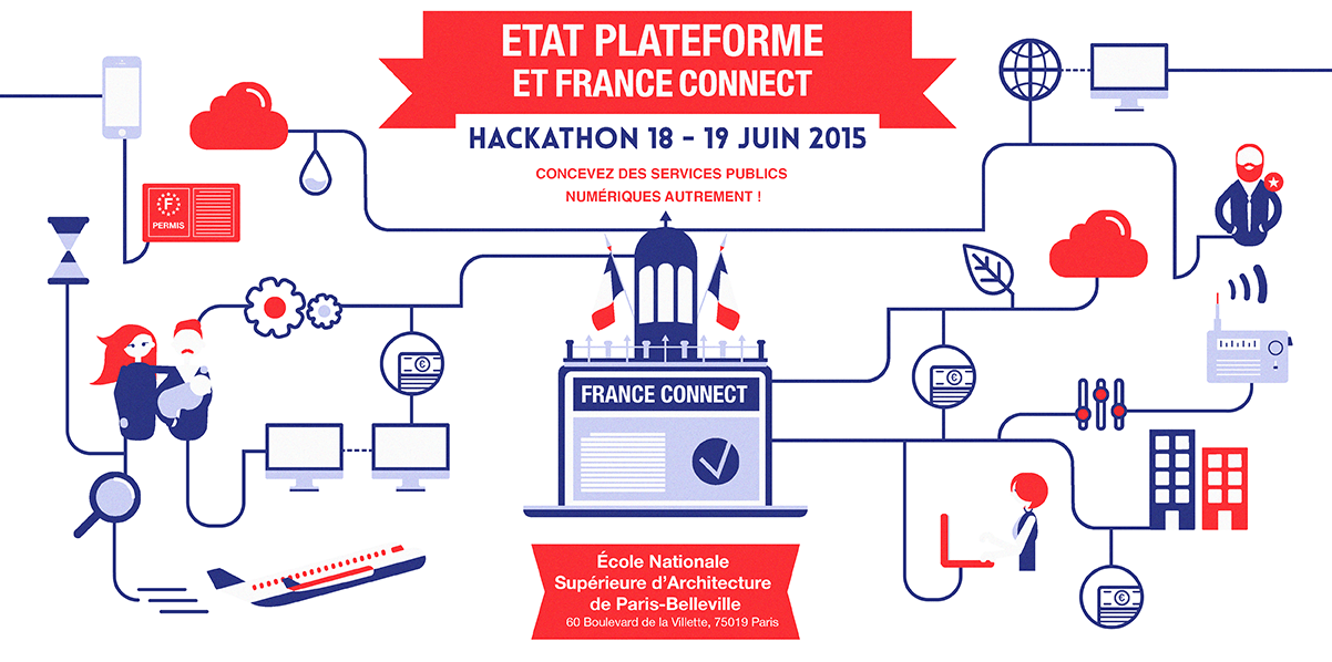 Le jeudi 18 et vendredi 19 Juin se déroulait le premier Hackathon État Plateforme FranceConnect organisé par la Direction Interministérielle des Systèmes d’Information et de Communication (DISIC) et le Secrétariat Général pour la Modernisation de l'Action Publique (SGMAP) à l’Ecole Nationale d’Architecture de Belleville.