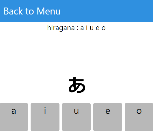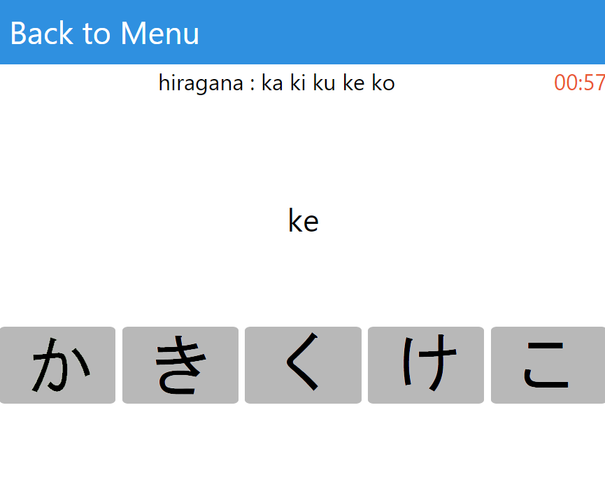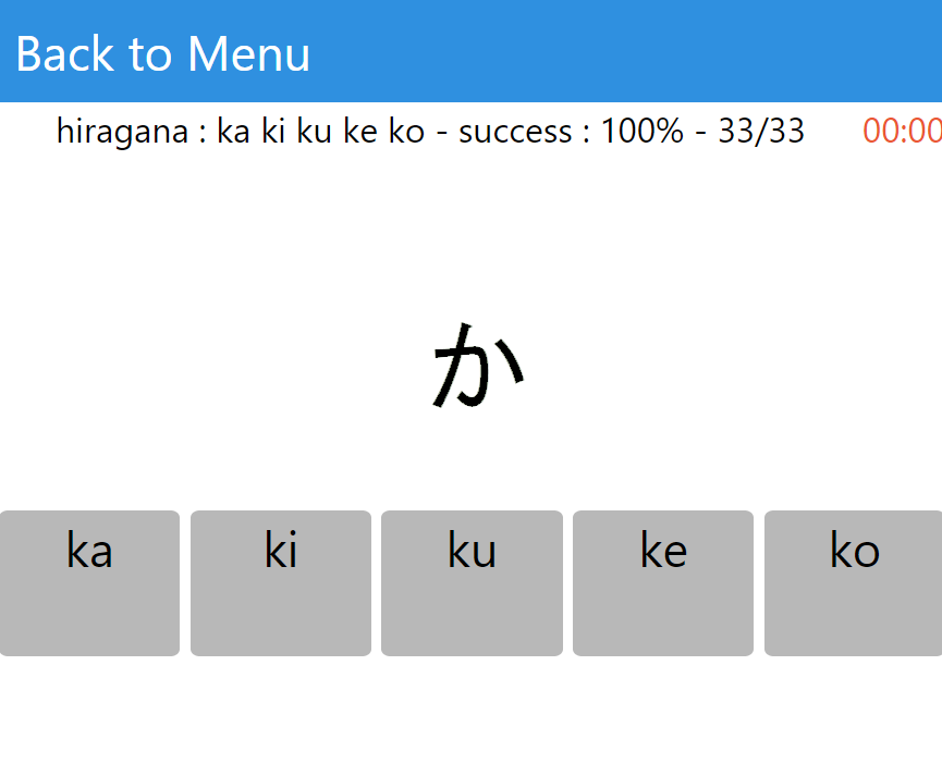Le kana est affiché, la zone de saisie invitera l’utilisateur à deviner vraiment le romaji.