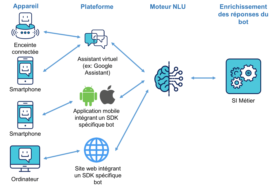 Un assistant conversationnel (chatbot) est un programme qui va rendre un service à l'utilisateur sous la forme d'une conversation, audible ou textuelle.