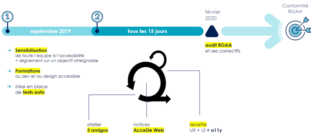 - formations (au design accessible, au développement accessible, au PO accessible et à la contribution accessible),