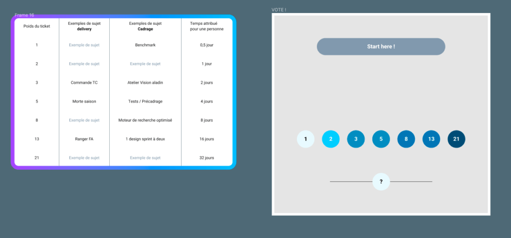 Espace de voting créé sur Figma pour calculer la "capacité à faire" du studio