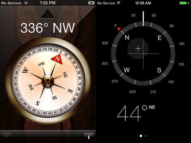 Application boussole iPhone : Skeuomorphisme vs “Flat Design”type i0s7