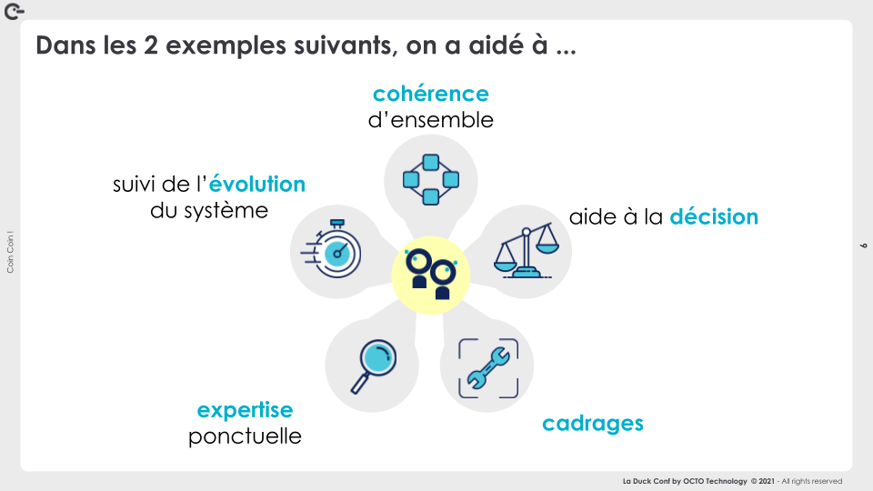 - Les aspects de cadrage : réunir un contexte pour permettre à une équipe d'avoir une vision claire lorsqu'on fait naître un nouveau composant, pour savoir vers où il va évoluer.