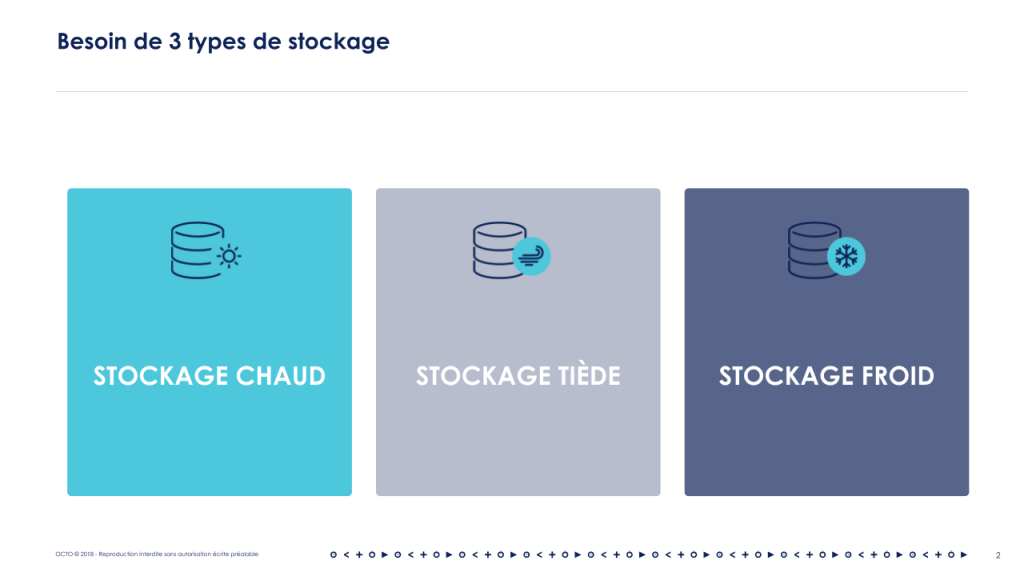 Le second besoin concerne les données. Dans cet article mes collègues introduisent le besoin de 3 types de stockage pour les données :