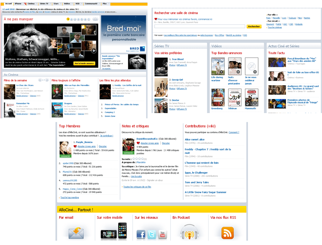 Et voici le site web AlloCiné en trois parties, constitutives de la page d’accueil.