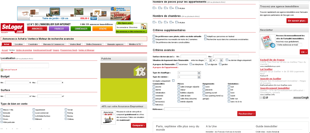 Note : Extrait de LA page (2 parties) de saisi de critères de SeLoger.com :