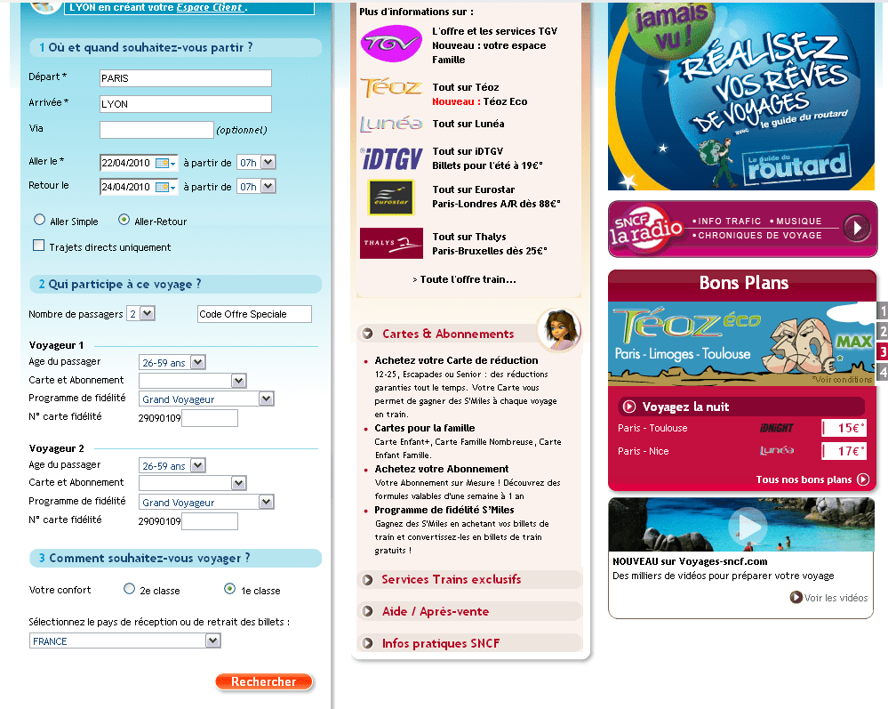 Et la page d’accueil du site Voyages SNCF :