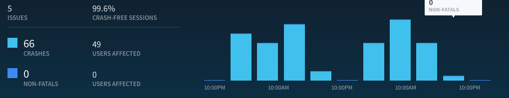 Comme nous pouvons le voir, très peu d'utilisateurs ont été impactés par des crashs. Avec seulement 57 utilisateurs qui ont connu au moins un crash, le taux de sessions sans crash est réellement élevé, signifiant que la stabilité des applications n'a pas lésé l'engagement des utilisateurs..