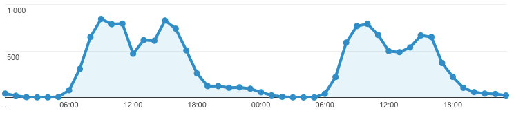 En utilisant Google Analytics, nous pouvons voir l'évolution du nombre d'utilisateurs durant toute la conférence. Le graphique suivant montre cette évolution (les données sont agrégées par heure)