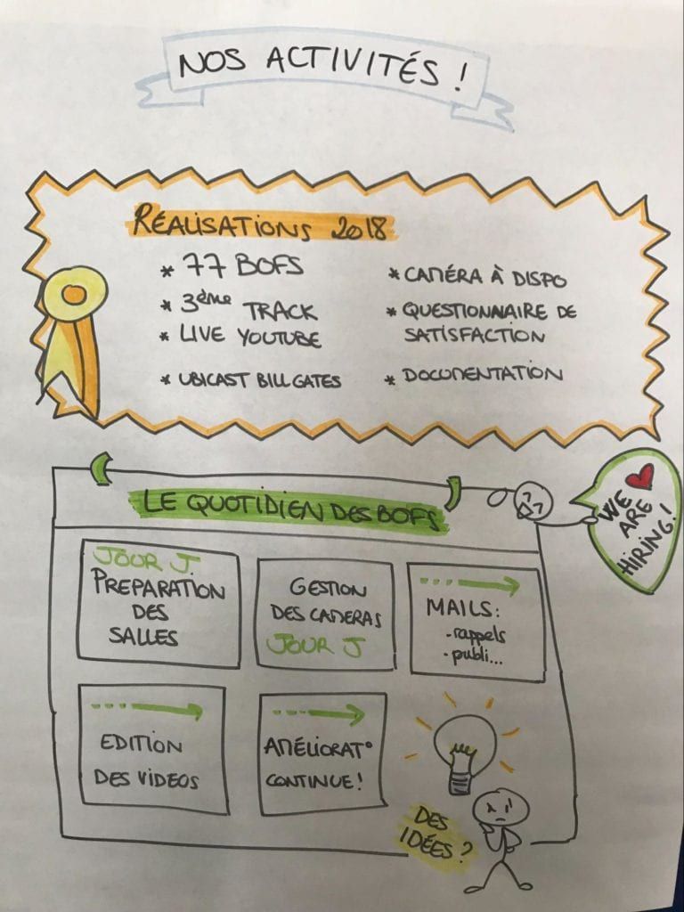 Parce qu’une image vaut mille mots, voici les BoFs résumées en dessin