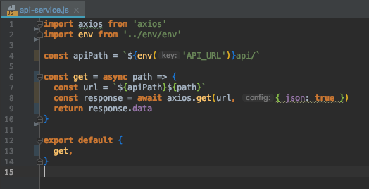 Pour cela, j’utilise un api-service qui va gérer toute la partie infrastructure (axios, API_URL, extraction de la donnée dans le champ ‘data’).