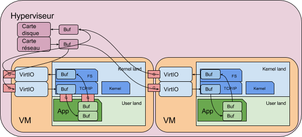 Notez que ce dernier peut ajouter une réplication des buffers et qu’il y a un franchissement de Gateway supplémentaires via les VM_Exit.