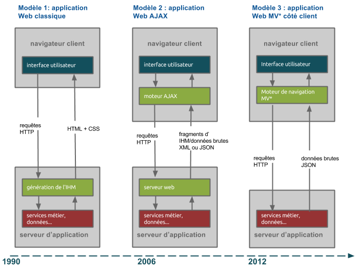 L'important dans cette nouvelle architecture est donc le déplacement de toute la logique d'IHM du serveur vers le client.