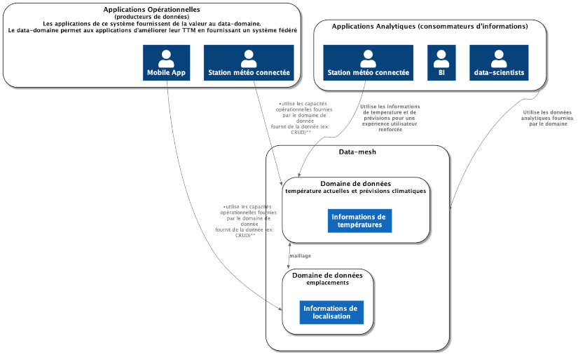 Ainsi, dans un domaine de données, nous saurons qu'un data-product fournit des données portant une information précise. Corollairement, dans l'écosystème global, nous saurons que si nous avons besoin d'une certaine information, nous la trouverons gérée par un data-product spécifique.