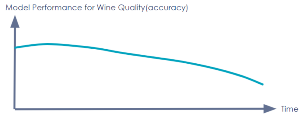 Let’s say that you are part of the Data Science team of a wine company. You worked on a model to predict wine quality. With promising results (80% accuracy), you decide to put your model into production. However, a few months later, you face a severe drop in the model’s accuracy (50% accuracy).