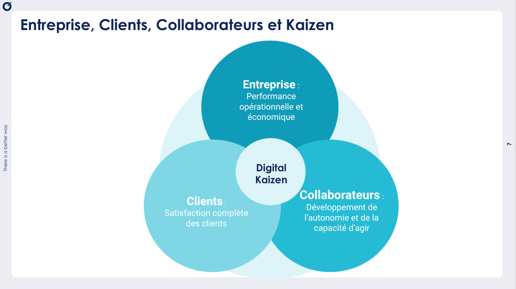 Le troisième est de montrer la formidable pertinence du Lean et du Kaizen dans le monde du numérique et son impact sur l’engagement des collaborateurs, la satisfaction des clients ou la performance financière. J’en parle dans mon livre #hyperlean - ce que signifie l’avènement du numérique. Des entreprises numériques brillantes telles IS&T au Brésil (voir leur e-book Faster, Faster) ou encore la FinTech Qonto ont fait du Lean et du Kaizen leur stratégie pour des résultats exceptionnels.
