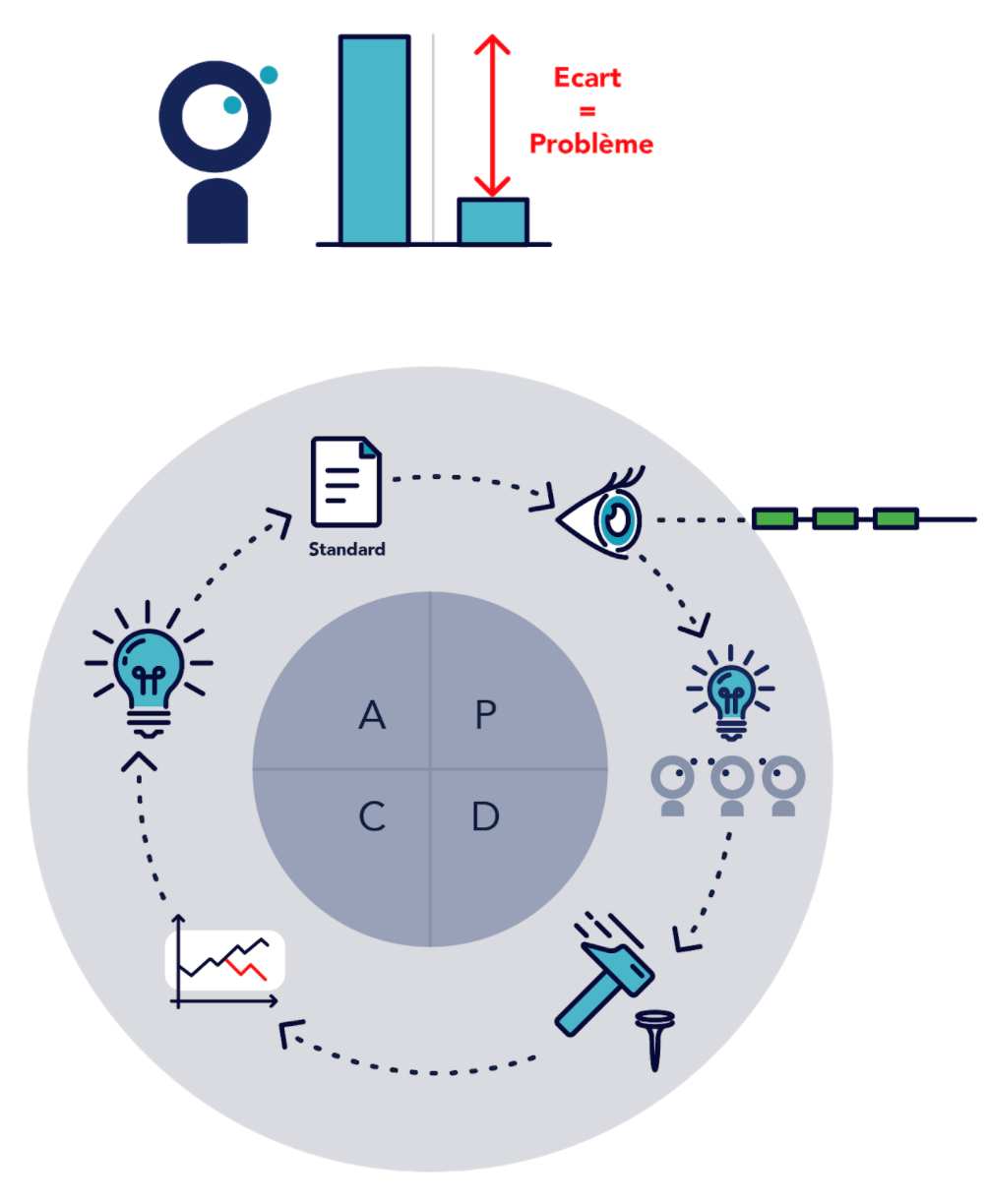 C.D - La manager permet aux collaborateurs de développer leurs compétences en les coachant dans la résolution de problèmes avec le PDCA. Une pratique simple à comprendre mais rigoureuse et difficile à mettre en œuvre (un peu comme arrêter de fumer).