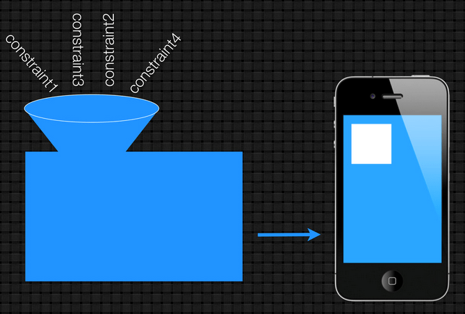Désormais, il ne faut plus configurer la frame d’un élément mais définir des contraintes entre les différents éléments. Autolayout n'est rien d'autre qu'une équation linéaire avec :