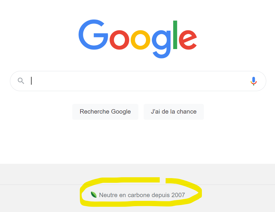 Google se dit neutre en carbone depuis 2007. Attention au mensonge par omission : Google ne prend en compte que ses activités directes (scope 1 et 2 du bilan carbone selon l’Ademe), ignorant l’impact bien plus important du scope 3 : les tonnes de marchandises superflues boostées par son modèle publicitaire.