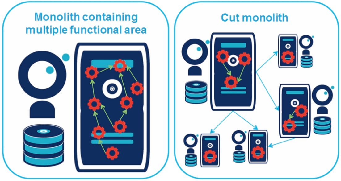 Automated tests are essential to limit risks. In their absence, it is necessary to consider the application as a legacy and use the proper techniques to remove the technical debt.Before getting into the “cutting” phase, we must examine the data distribution issues: this is the most structural element and can make the operation impossible.