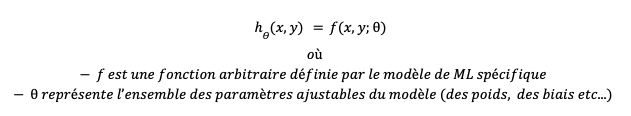 Un modèle de machine learning va être entraîné afin que h(x,y) soit aussi proche que possible de la fonction cible f(x,y)