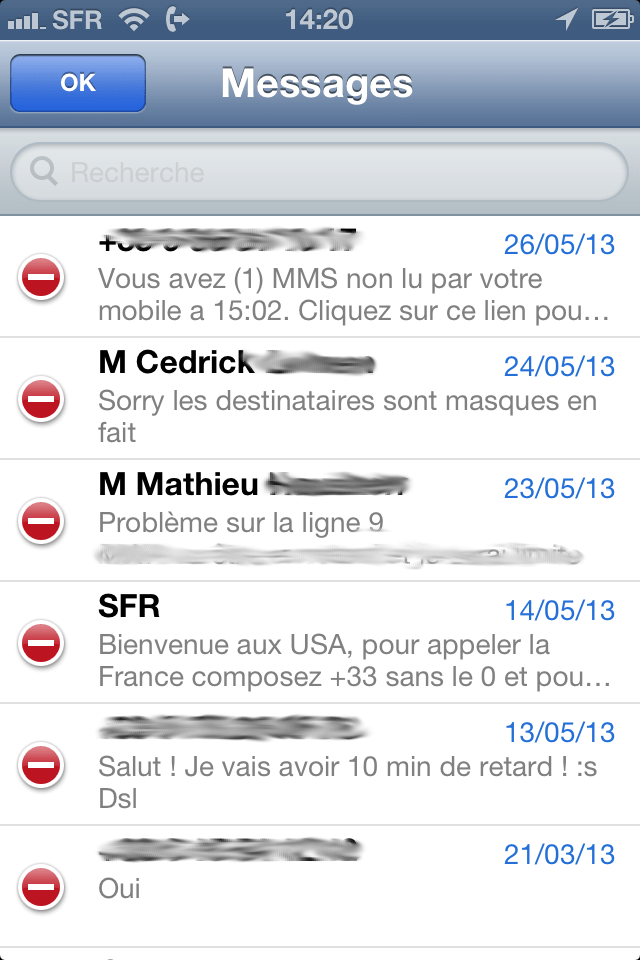 Sur iPhone, lorsque l’on souhaite supprimer des éléments dans une liste, il y a généralement un bouton “Modifier” dans la barre d’action qui mène à sur un écran de ce type :