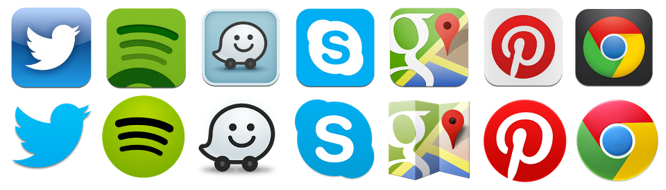 L’icône de l’application est le premier rendrez-vous entre votre marque et les utilisateurs. Si sur iOS, votre icône doit respecter le standard carré arrondi, sur Android, vous pouvez utiliser votre logo tel que, sans modification ni surplus et ainsi faire valoir votre marque... profitez-en ! Voici quelques exemples d’applications connues :