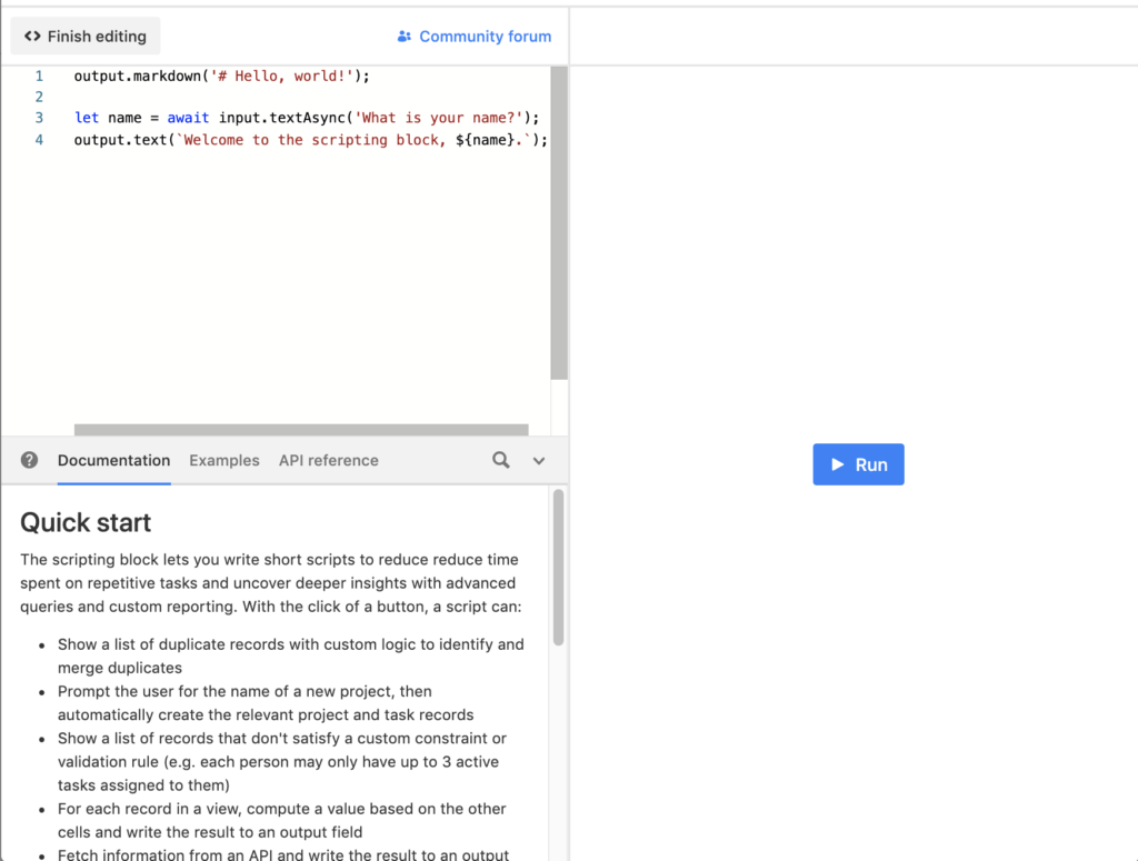 L’utilisation de la fonctionnalité de Scripting Block permet d’implémenter des processus internes à AirTable de manière fiable, rapide et économique.
