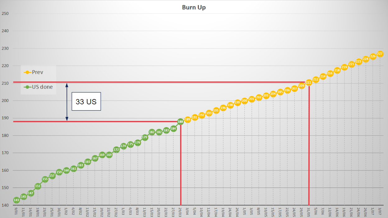 Et notre burn-up chart aura ainsi pour unité l’US Done.