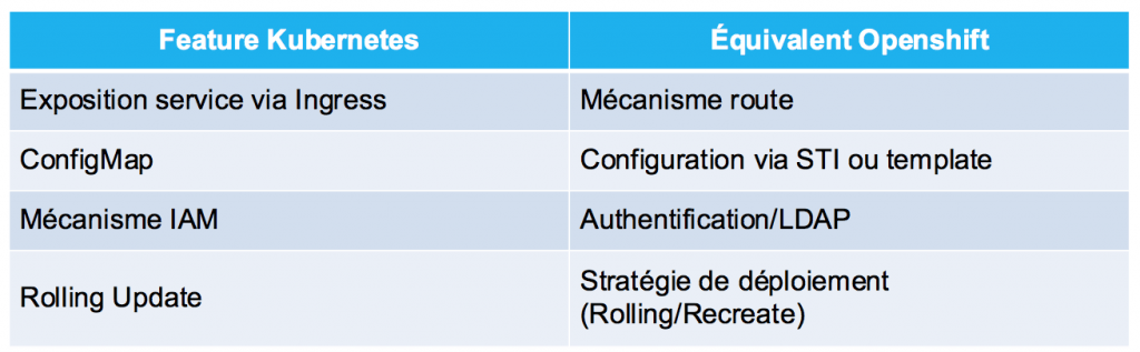 En regardant de plus près, nous constatons que ces fonctionnalités sont déjà présentes pour la plupart dans Openshift Origin (La solution de PaaS de RedHat basée sur Kubernetes), l’ajout des ConfigMap est un autre exemple.
