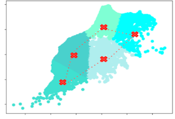 _Figure 4 :  Visualisation de la résolution du problème du TSP sur les centroïdes de 5 clusters.