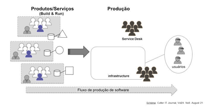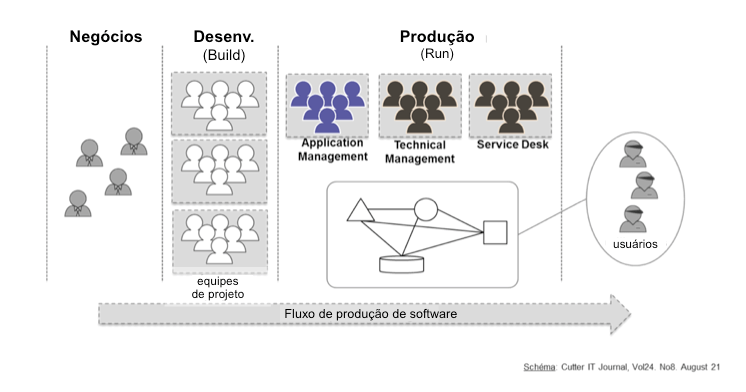Com DevOps, a equipe passa à ser responsável por todas as fases antes realizadas pelas equipes de infra: