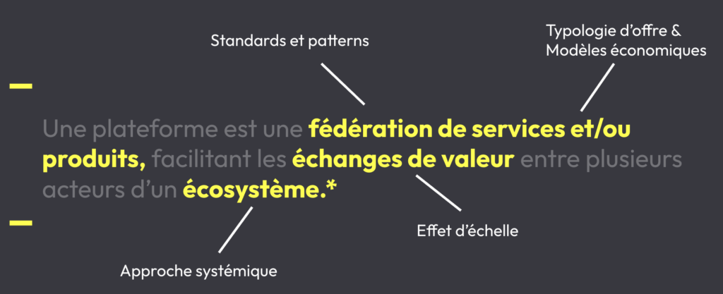 “Une plateforme est une fédération de services et/ou produits, facilitant les échanges de valeur entre plusieurs acteurs d’un écosystème”