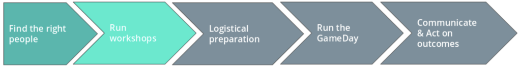 Une équipe de 20 personnes se forme pour mettre en place le Game Day. S’ensuit une série de plusieurs workshops pour :
