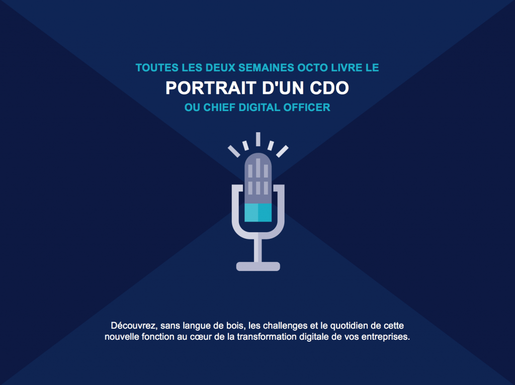 Chez OCTO, nous accompagnons nos clients dans cette phase de transformation et nous croyons que le CDO a un rôle important à jouer aujourd’hui, celui d’aider son entreprise à passer dans l’ère du numérique. Mais nous pensons aussi qu'un homme ou une femme, même brillant, ne peut transformer seul une entreprise. Nous percevons des écarts entre nos différents interlocuteurs en charge de cette activité chez nos clients, et nous trouvons intéressant de mieux comprendre cet acteur clé de la révolution qui touche tous les secteurs d’activité. Vous êtes sûrement vous-même confronté aux changements qui touchent votre activité et vos manières de travailler. Vous avez peut-être même sûrement déjà été amené à collaborer avec le CDO de votre entreprise ou vous avez suivi les actions entreprises par ce dernier pour accompagner les modifications de votre société. Vous allez pouvoir le découvrir sous une autre facette au travers d’une initiative inédite #PortraitDeCDO.