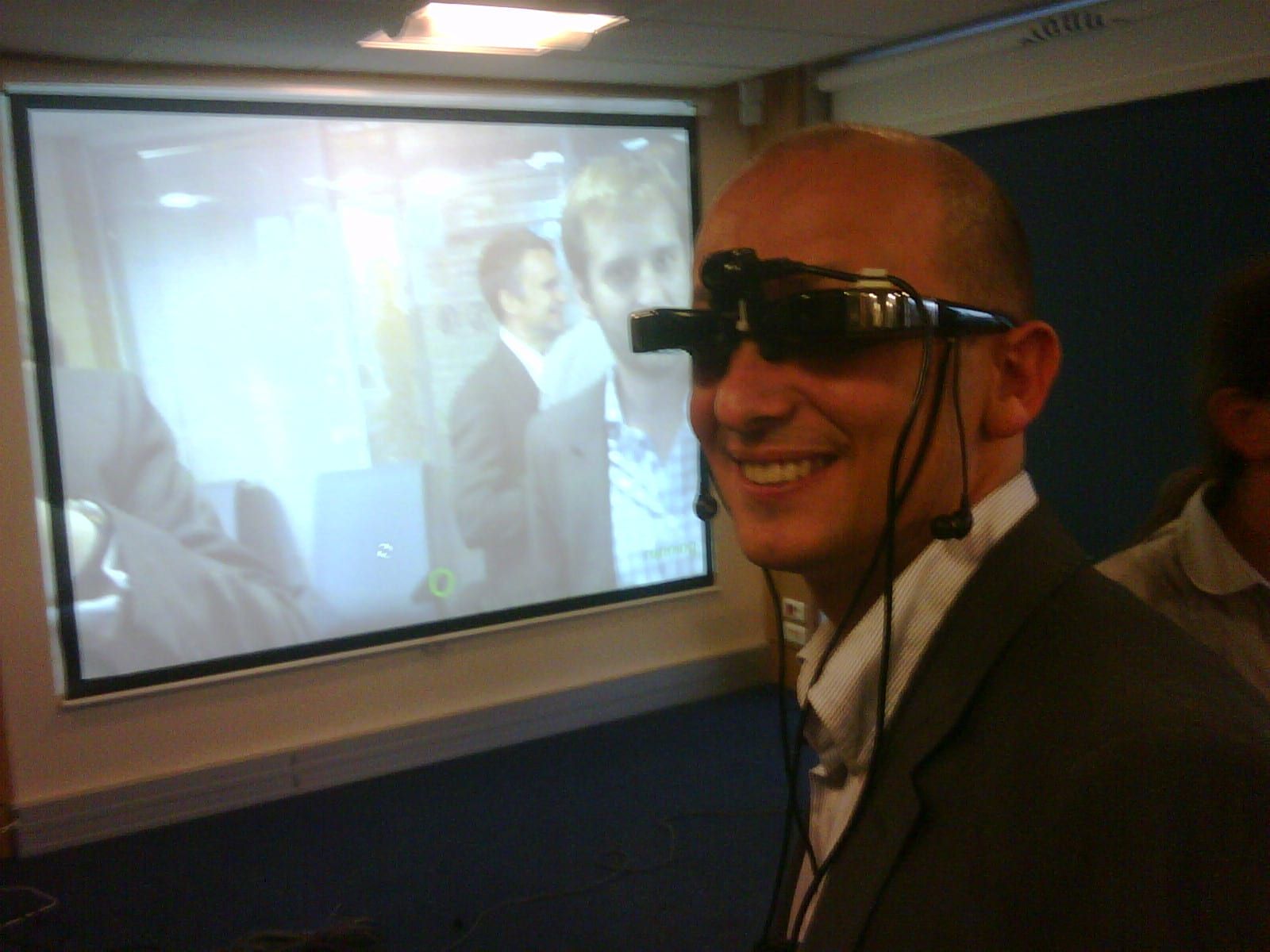 Note that it's still a prototype: in this version, the user sees the environment thanks to screens inside the glasses. In the next version, the user will see through the glasses and the information will be inserted on the glasses (just like with Head Up Displays that can be found in some cars).