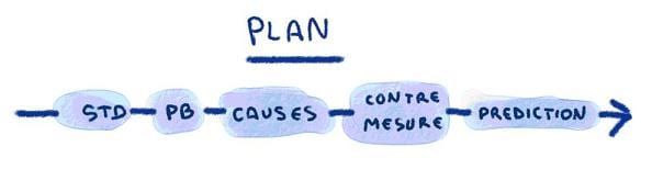 L’étape PLAN contient 4 parties. Définir ce que l’on veut, comprendre l’écart avec ce que l’on a, choisir une contre mesure et faire une prédiction.