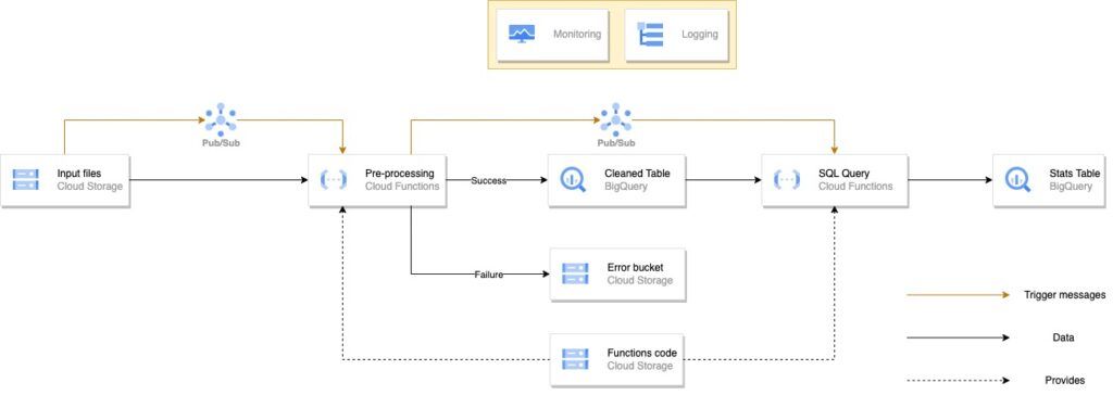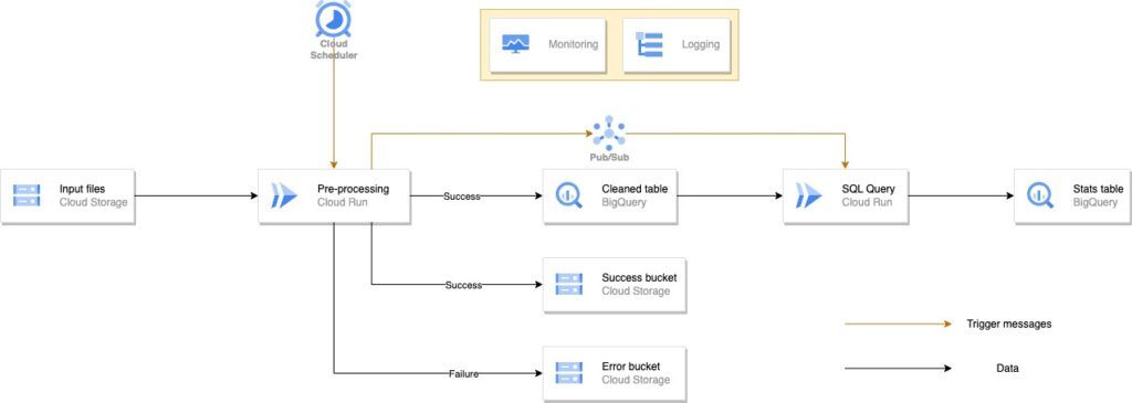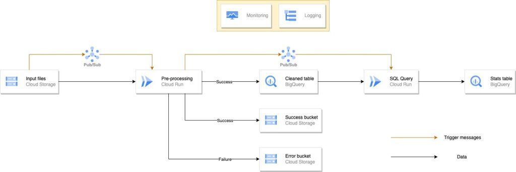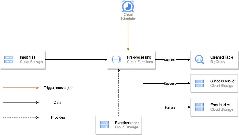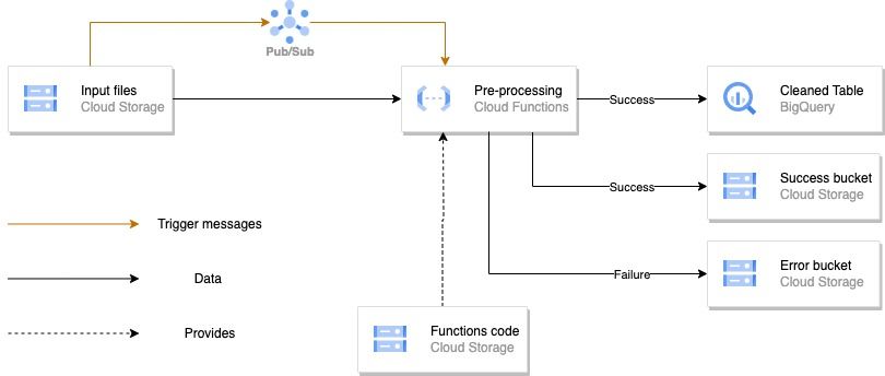 Nous souhaitons aussi que lors de l’ingestion, un pre-processing soit réalisé sur les fichiers ingérés. Les fichiers nettoyés seront ensuite écrits dans des tables Big Query.