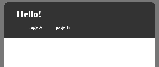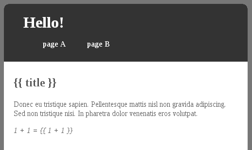 Prenons un exemple d'application web codée en NodeJS propulsée par AngularJS qui sert une page globale index.html et les fragments de contenus a.html et b.html correspondant aux URIs /a et /b (sources du projet). Remarque : dans la terminologie AngularJS on parle de 'partial' pour faire référence à un fragment.