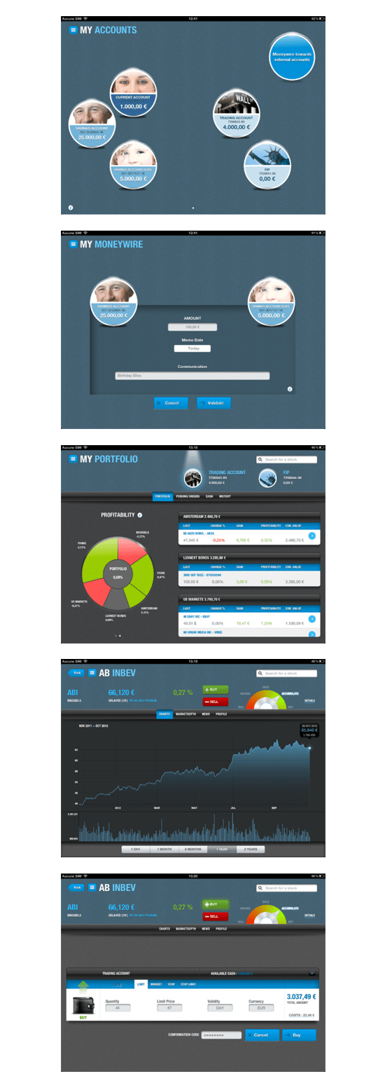 For us, User eXperience (UX) is really important. We believe a good UX changes everything. That’s why we had a UX designer during the whole project to challenge every usage, to create new patterns of banking and trading on tablets.