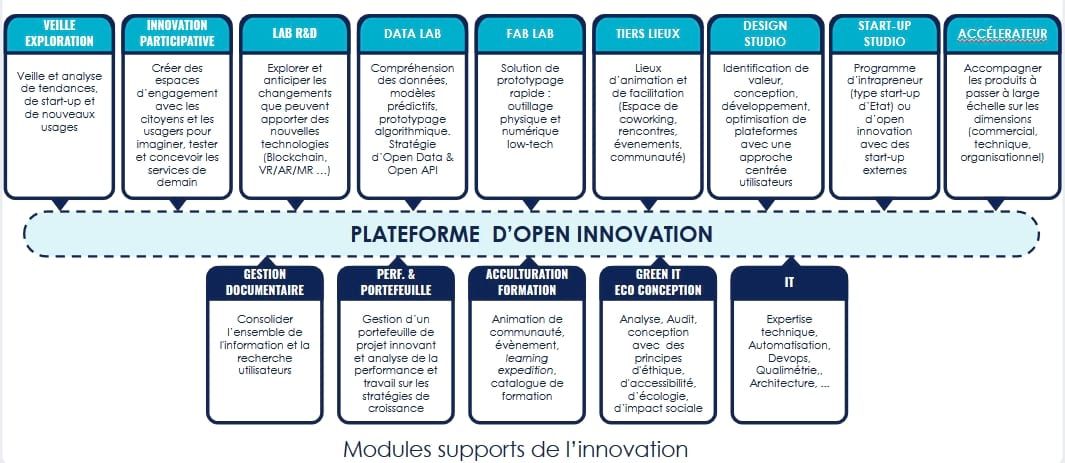 - l'offre de services de l'innovation (veille, inno participative, datalab, fablab,...)