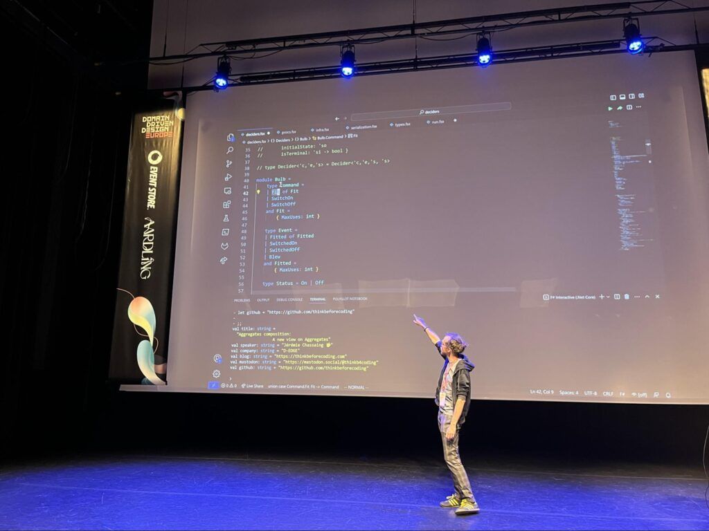 L’hôte de cette conférence “EventSourcing Live”, Oskar Dudycz, annonçait en début de journée une volonté d’introduire plus de live coding et d’interactivité avec le public dans les talks.