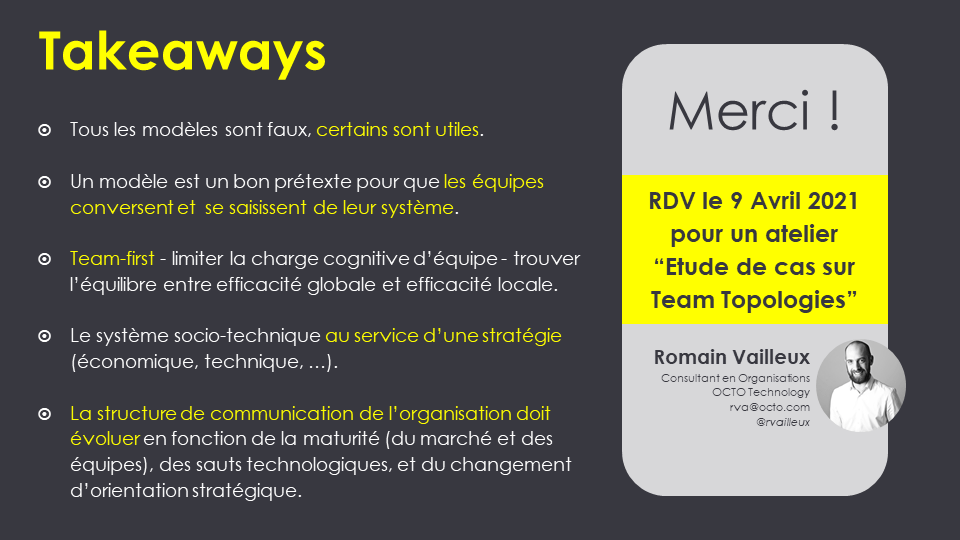 En s’inspirant du best-seller Team Topologies: Organizing Business and Technology Teams for Fast Flow par Matthew Skelton and Manuel Pais, Romain donne quelques conseils pour passer à la pratique, réorganiser vos équipes pour mieux répondre aux enjeux stratégiques de votre entreprise et concevoir à cette occasion des organisations apprenantes où il fait bon vivre.